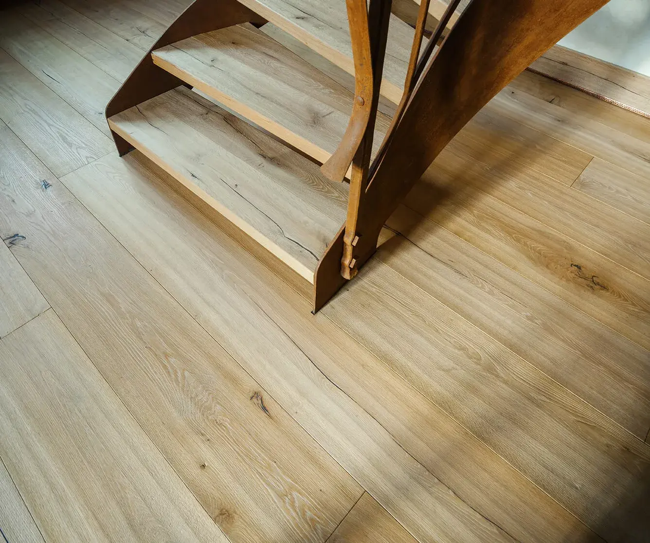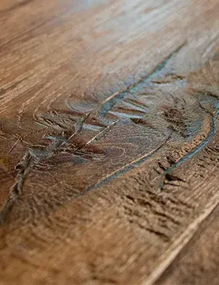 We start the decision-making process with the final touch, making it both enjoyable and effortless. The final touch has a significant impact on the floor's colour and your day-to-day experience. You can choose from various options, including pigmented or clear natural oils to achieve the desired colour shades and effects. For a truly distinctive and authentic appearance, you can even opt for a flame-burnished surface.