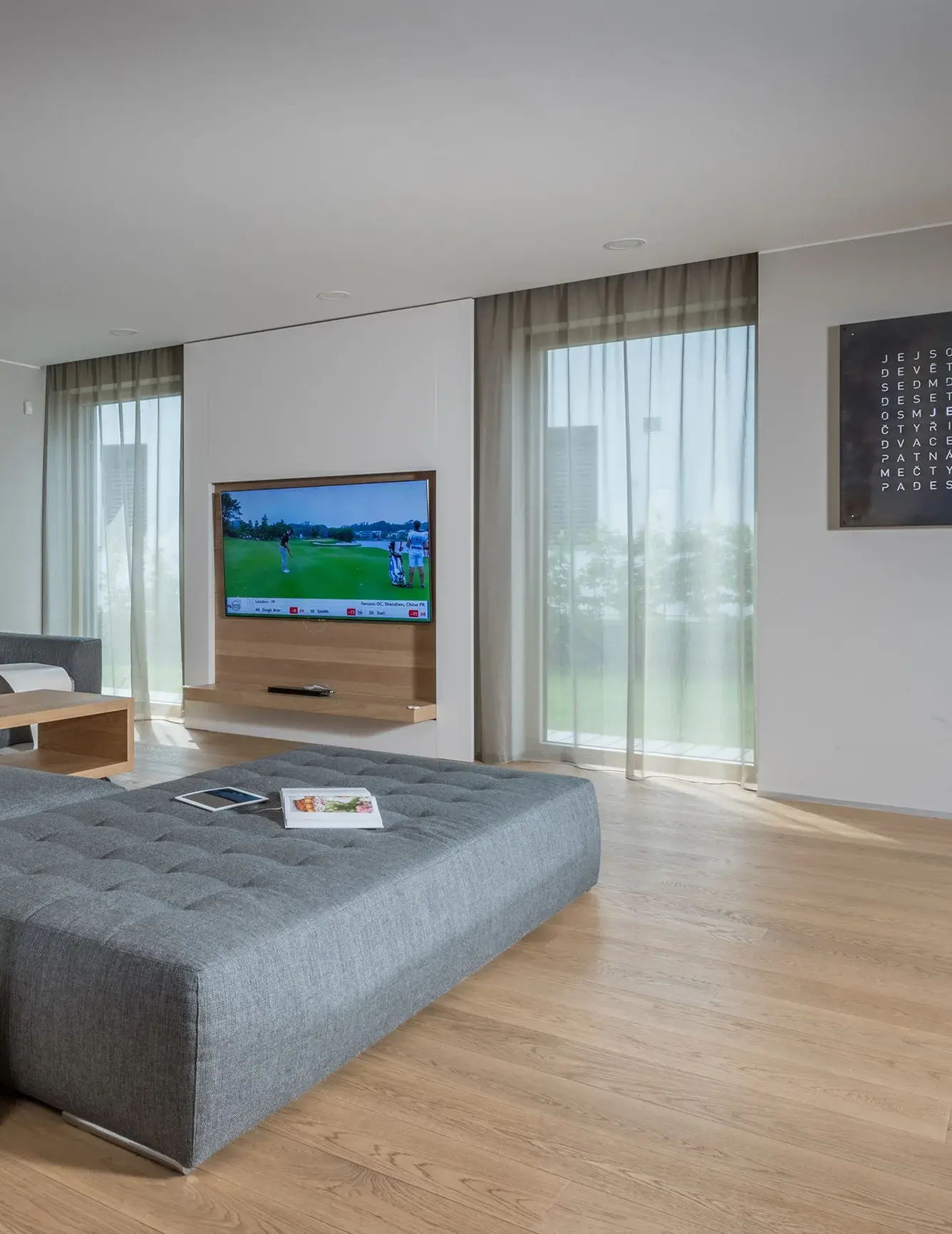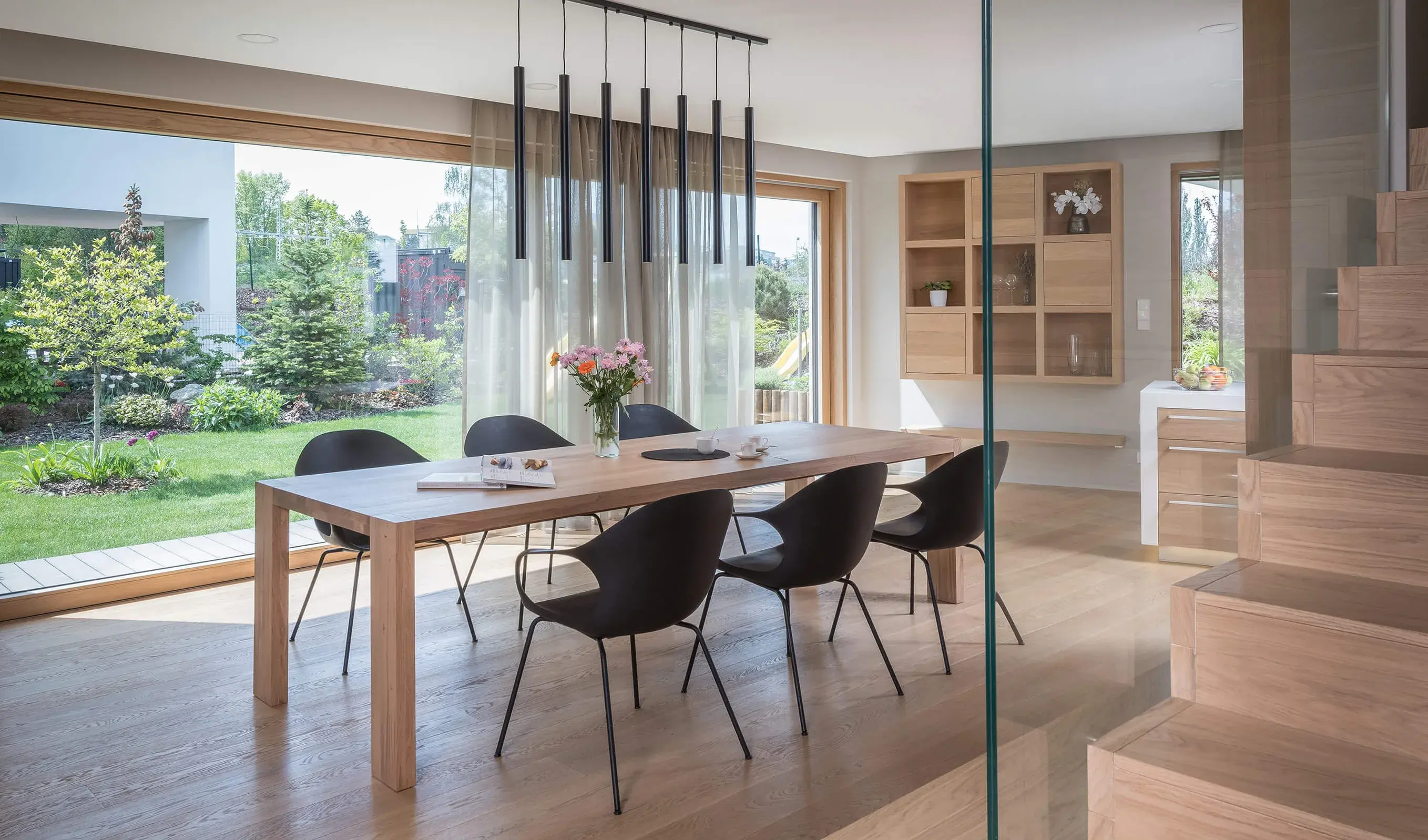 The interior design of Vila Hostivař is a clean canvas. It's characterized by clean lines, Zen-like modernity, and an abundance of light. The entire concept is based on the interplay of geometry and lines, creating an interior that's both visually appealing and highly functional. For the wood flooring, we chose Oakcent's Sand Collection.